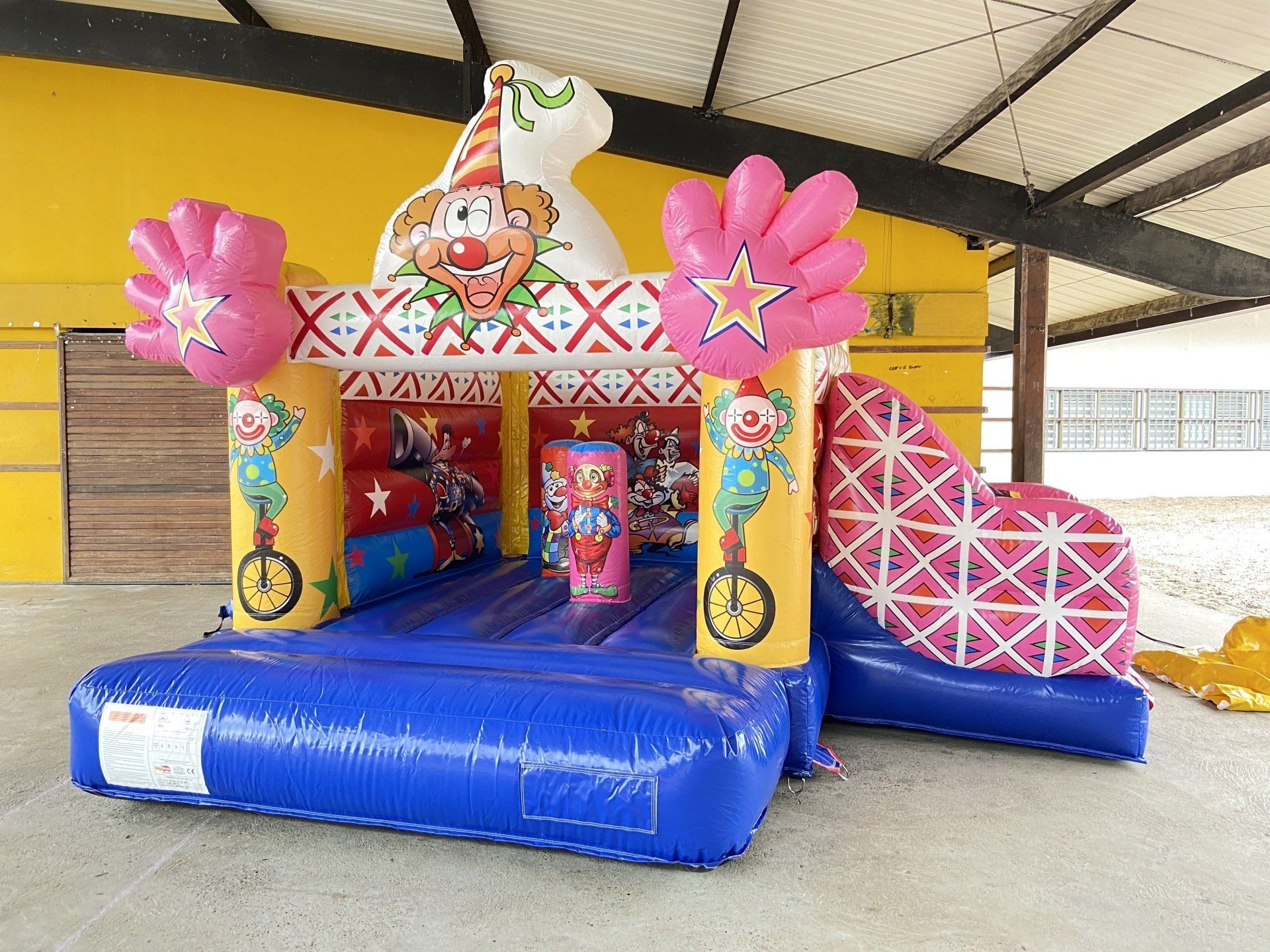 Entrez dans l'univers formidable du cirque. Le clown vous accueille avec les bras grand ouverts pour des heures de folie entre sol trampoline, obstacles à franchir pour finir en beauté avec un mini toboggan.