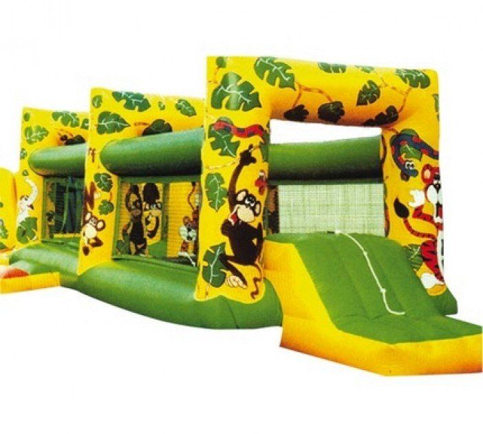 Entrez dans l'univers de la jungle avec un parcours semé d'embuches pour finir par un beau toboggan de 5m de haut.