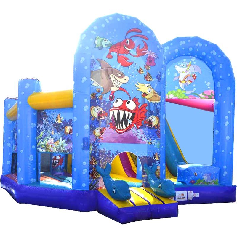 Plongez avec les dauphins dans ce cube de 25m² qui va vous faire voyager dans la mer grâce à son coussin trampoline en forme de vagues.