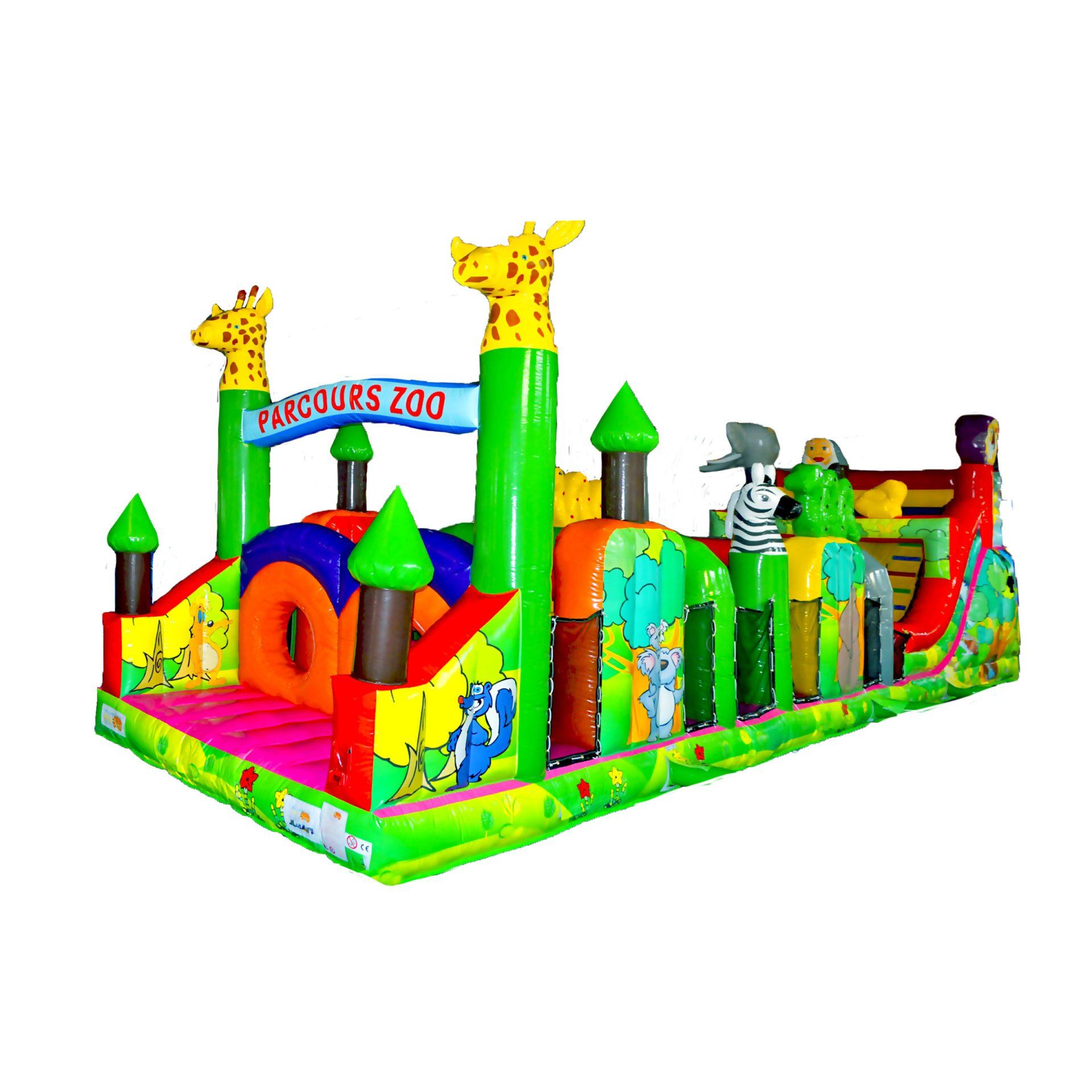 La Girafe vous offre une grande surface de coussin trampoline et 3 obstacles intégrés pour laisser libre court à votre imagination.